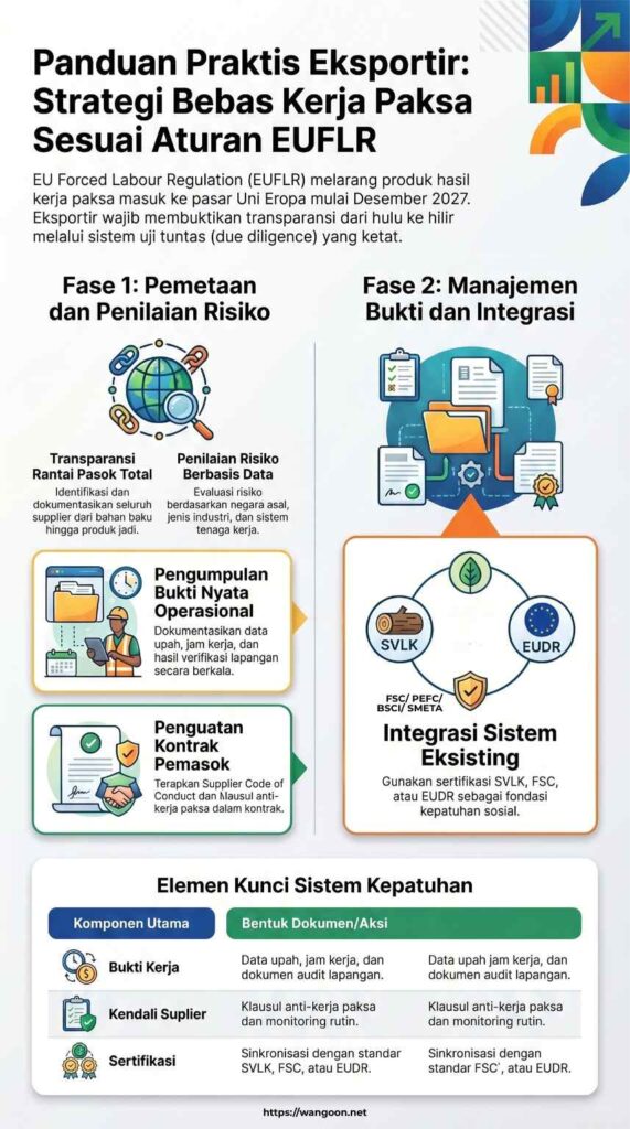 Bagi pelaku usaha yang ingin memahami lebih jauh implikasi regulasi ini, termasuk langkah-langkah praktis dalam menyiapkan sistem kepatuhan rantai pasok, konsultasi dan pendampingan dapat menjadi langkah awal yang strategis. Informasi lebih lanjut dapat diperoleh melalui Wangoon Multi Solusi, yang menyediakan layanan kajian, pendampingan, serta pengembangan sistem kepatuhan berbasis kebutuhan industri.
