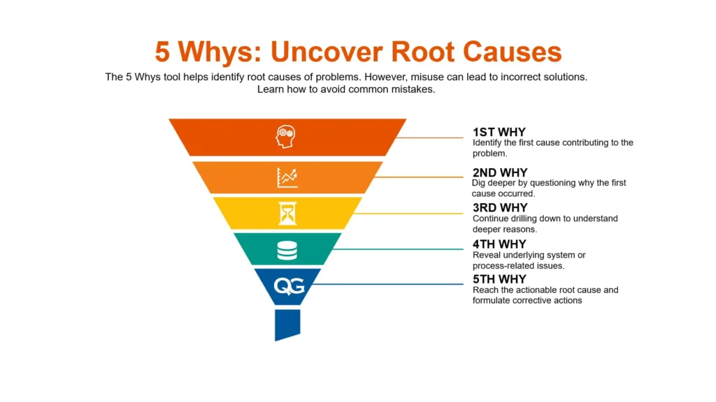 Di ISO 9001, misalnya, penekanan pada risk-based thinking membuat 5 Why relevan sejak hulu. Ketika keluhan pelanggan muncul atau inspeksi menemukan cacat, analisis akar sebab membantu memastikan tindakan tidak berhenti pada rework atau sorting. Ia memaksa perubahan yang menyentuh kontrol proses, pelatihan, hingga desain spesifikasi. Dalam ISO 14001, pendekatan serupa dipakai untuk kejadian lingkungan: tumpahan bahan kimia, limbah yang tak sesuai baku mutu, atau temuan signifikan pada aspek lingkungan. Akar sebab yang terdokumentasi rapi memperjelas apakah masalah terjadi karena prosedur yang timpang, peralatan yang tidak memenuhi syarat, atau pengendalian yang tak dijalankan. Sementara di ISO 45001, 5 Why menjadi cara berdisiplin untuk menelusuri kecelakaan dan near-miss: bukan sekadar “kelalaian pekerja”, melainkan apa yang dihilangkan dari hirarki pengendalian risiko, apakah rekayasa teknisnya, prosedurnya, atau pengawasan yang semestinya mencegah kejadian.